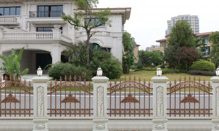 可拆裝,無焊接制作安裝簡便快捷,采用專利的連接件,大大提高安裝效率。運輸便捷,一定程度上節省了運費。,  一、門框放入門洞時必須上下平行左右垂直,如門洞比門框大一公分以上時,必須用石塊或木塊將門框的膨脹螺絲墊實,在門框左上右下先打膨脹螺絲,不要擰緊,羅馬柱的門應先裝羅馬柱到門框上,然后再放入門洞。,  為了避免金屬生銹,能夠按期用棉布蘸上少量的防銹油或縫紉機油擦拭表層局部,堅持鐵藝欄桿光亮如新。,  高級鐵藝制作的表面裝飾效果漆色彩豐富,多采用進口漆手繪,既古樸典雅,又時尚流行.最經典的表面裝飾效果漆有青古銅色、紅古銅色、古銅金、黑色、銅金邊、白色金邊等。,  1、造價比較實會。