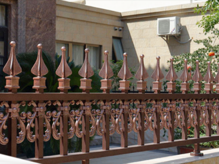 1、陽臺鋁藝護欄欄桿的材質選用:依據圖紙以及客戶實際要求在建筑規范允許的范圍內,并保證結構可靠性、安全性。考慮經濟性因素,一般結構,選用Q220B型板,金屬材料機械性能能夠保證,材料性能能夠保證設計對一般結構金屬造型的各項要求。,  安誠護欄從圍欄護欄產品方面脫穎而出的方法:,  4、廠家的生產加工工藝:正規廠家生產的別墅鋁藝大門,其加工比較精細,切線流暢、角度一致,在拼接過程中應該不會出現較明顯的縫隙,密封性能好,開關順暢。劣質的庭院別墅大門,特別是鋁合金室外產品如果加工不合格,會出現密封性質問題,不僅漏風漏雨,而且在強風和大的外力的作用下,玻璃會出現炸裂、脫落現象,從而給業主造成損失財物甚至傷人的現象。,  若發現陽臺護欄曾經開端有銹斑,則應該盡早用棉紗蘸機油涂于銹處,這樣能夠除掉銹跡,而不能直接用砂紙和其他糙面資料休止打磨。,  一、門縫尺寸可通過鉸鏈間隙、伸縮螺釘松緊來調整。